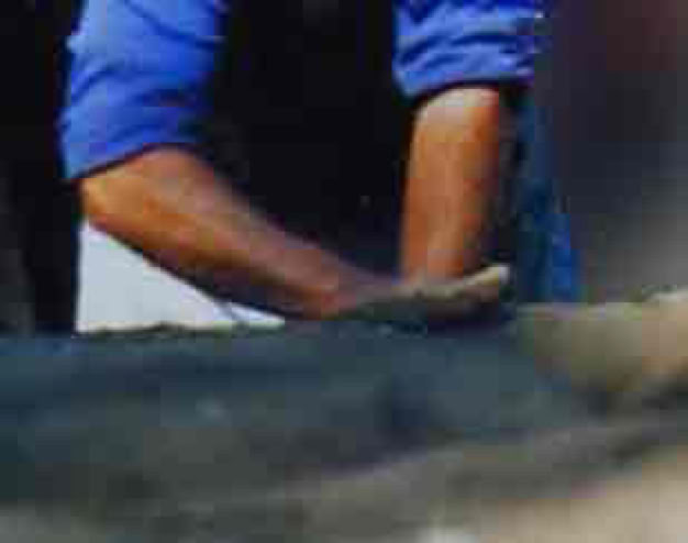 How much force should one use in this work. The proper degree of force used must be learned by experience. Never so much force during cementing as to deform the sand mold beneath, and always enough to even out fresh pours. The cement should not be applied to loose, easily disturbed cement molds, while in gelled- thixotropic state. This quality-issue of cement-application, can not be emphasized enough and is the reason masons often agitate mixes just prior to cement application. Most graphic is to watch how quickly a plain cement slurry can gel if left to stand. This has nothing to do with cement hardening or curing.... The proper force to apply during cement molding is learned by experience of sand mold building. Here again, mold building uses patting and smoothing. Loose sand molds are the easiest to maintain and live with. (We might prefer to keep life easily manageable). The larger the work piece, the heavier the work load will feel. A human's comfort zone for labor affects this very much. We need to determine that comfort zone with practice and thereafter strategize our work loads for each day of work.