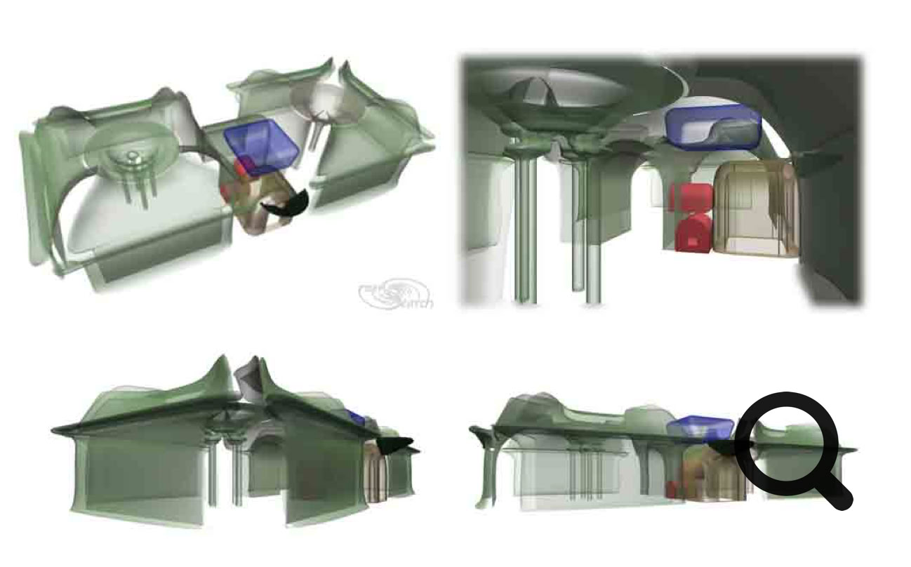 The example above adapts heavy should show that pillars can multitask. I love CAD modeling but almost always have priorities. Besides thermal moderation, many functional fixtures can be integrated within the pillars. Truly green construction would benefit with generous water storage cisterns held high for gravity flow. (More examples should be added here in future.) Much thinner pillar supports could otherwise work, where lightweight loads are preferred. Emphasis is on the widely flaring capitals on the pillar tops. Large capitols can morph into arches and vault work overhead. Hence an array of circulating barrel vaults on pillas. Also lacking in my CAD models here, is the consideration of frameworks, to strengthen interior surfaces. Perhaps some materials could pass strength tests, as drawn. Yet for average Portland mixes, i believe frame works or integral pilisters make sence. Otherwise coffers fashioned into shelf space or integral cabinets could also provide this sort of added reinforcement. Integrated building components make the most sence to me, but also require much more modeling time. I felt it worthy to present this simpler modeling, just to open a dialog on the subject. This type of structure also can be completely integrated with green HVAC.