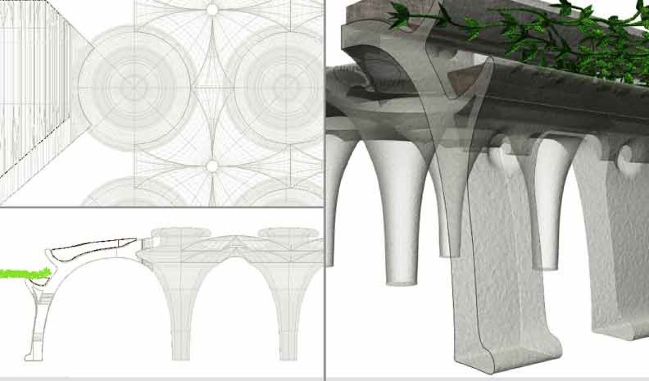 The use of arches and pillars is advantageous where gravel and other supplies are plentiful. Each region favors particular material uses. In some cases, stony masonry or recycled brick might be advantageous. Recycled rubble from demolition debris might be appropriate for building with sticky concrete mixes. Reducing transportation costs will reduce building costs. Concrete can reduce flammability. Renewable bio-composites and selective admixtures can reduce planetary toxicity. High end, so called ductile composites (or Engineered Cementitious Composites, ECC), can reduce the total building mass. Whilst desirable thermal mass can be obtained from cisterns and the ground beneath. Reinforcement and insulation availability also varies according to geographic regions.The objective of this circular barrel vault module is to carefully integrate many efficient and desirable design criteria.