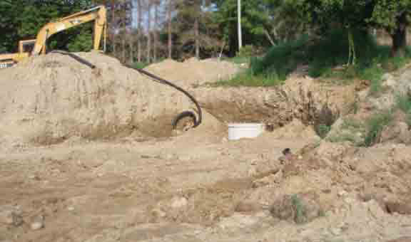 I went back to work, on the same construction site, about 6 weeks after my "accident". With my excavator friend away at that moment, I had decided to rent the yellow excavator in the picture above to continue the project, post haste, by myself. I love creatively-purposed earth moving work like this and originally would have done all this digging except that we wanted to speed the progress up. Progress then was suddenly stopped, for still other reasons. The whole event became a loss for all involved. The site remained as it was in 2007 for years thereafter, and it increasingly eroded and grewn over.