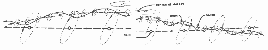 Buckminster Fuller (of geodesic fame) provided the above-scanned-image, in his book Synergetics. It has suggested to me yet another concept which might correspond tothese flow dynamics. The image above asserts the obvious spin dynamics within a galaxy.It can also suggest that if a universal flow of nature emanated outside of the galaxy, then tapping it's effects might involve some process like unwinding or untangling the sought-after alignments. Perhaps, in some way to induce some force. Ultimately can such force be configured to induce EMR?