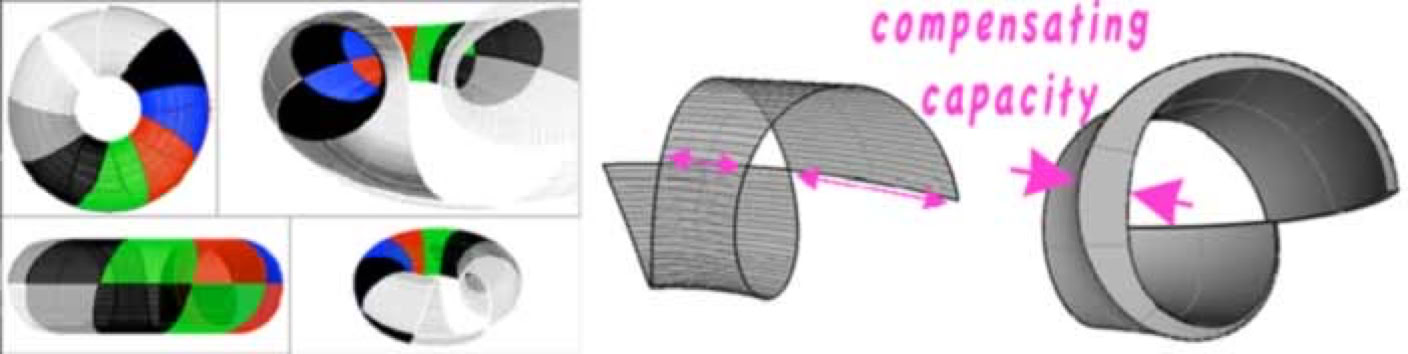 In 1992 i got my first PC (a 486 with DOS5 & Windows3.1) It took me a couple of years to acquire and learn 3D CAD software,( self trained and low budgeted). Coil visualization fascinated me and suddenly i had tools to explore new aspects of coils and combinations of helicity. Next is a graphic to show my meager attempts to "geometrically weigh" the imbalance of profile: I first tried to use vector based geometry but ended upconcluding that only raster or bit-mapped images could render the wanted profiles. However, my tracing software used to generate vector based software was lost through hardware and OS changes.So i gave up that minor aspect. I'm tired of relearning new software and paying for it. Then loosing it a few years later. I did verify the imbalances numerically, which did suggest that my assumptions of profile imbalance are valid, (geometrically measured).