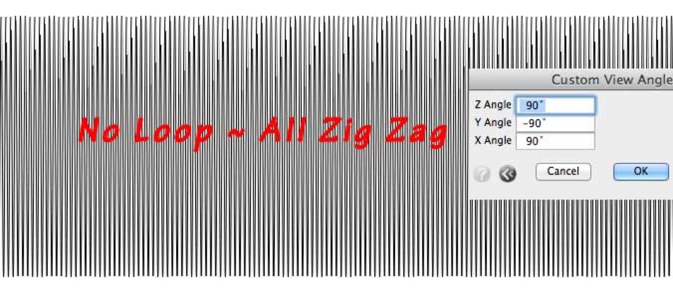 So far, this page hasnoted the profiles of coils with spacings much larger than the coil substance (wire). I emphasize the scale of spacing wires apart. The spacing locates and therefore controls the fields around the wire.Where the wires approach closer together, less space is available for fields. Leading to an interesting question: Is there a coil winding (spacing) which effectively diverts the fields, away from the wires? This is the ordinary, closely packed coil winding. The fully perpendicular, no angle view presents cylindrical coils as all zigzag, no loops: