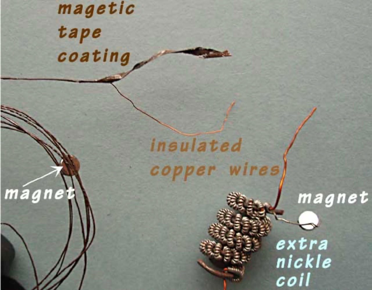These older coils are clearly very limited. I needed to turn my focus to earning money instead. Today i consider returning to these forgotten experiments.... The purpose of the magnetic tape, was a preliminary exploration of confining magnetic fields as much as possible, close to individual wires-- To at least reduce unwanted stray fields-- To attempt reduction of mutual inductance between opposing field directions. I feel this work should be restarted. Frequency harmonics or multiplication was noted with the magnetic coatings. Writing this 2012 webpage might urge me to renew my forgotten experimental efforts.