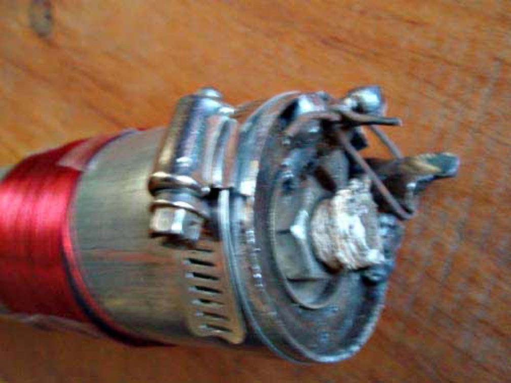 I have tried several methods to wind copper wire coils specifically for use in flat coils. The copper windings should ideally release easily, but instead the copper wire tends to hold it's position and not release easily. By comparison, springy wire like highly-tensile steel welding wire tends to slightly unwind itself, just enough to slip off the coil form or bobbin. Therefore i have tried to fabricate bobbins which can be squeezed into a smaller circumference. The photo above shows that a pipe clamp is used, on a thin piece of EMT conduit pipe, previously kerfed (cut) lengthwise. Conduit tubing, with very thin walled steel allows for a small reduction in tube circumference. Steel allows welding of fixtures, like the shown studs to hold circumference smaller- While the pipe clamp is remove- To allow slipping off the wound copper coil. For very long coils, better release mechanisms are needed. I will detail more of this continuing effort on a related page: Quadrantal Toroid Visualizations