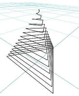 Next images below were earlier efforts to convey what it means to form or wrap a spiral around a triangular path. A smaller scale helix is used and the helix itself is shown with a variable number of turns and variable segmentation just for a start.