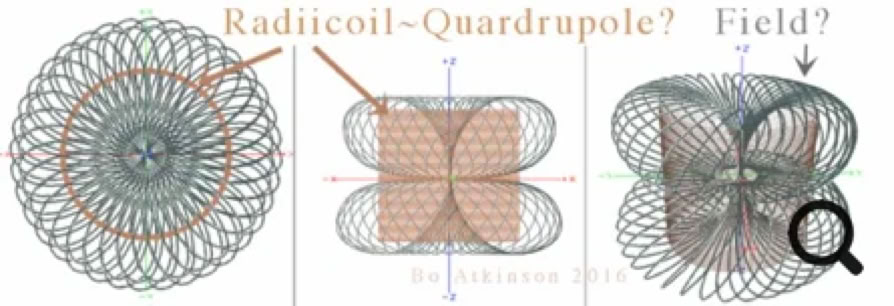 Next image below: Without expecting anything like a quadrupole… I had initially expected that both inner and outer magnetic vectors might-possibly flow in the same direction, due to the left hand rule for electromagnets. Instead a surprising radial pole results, from self-opposing poles inside.