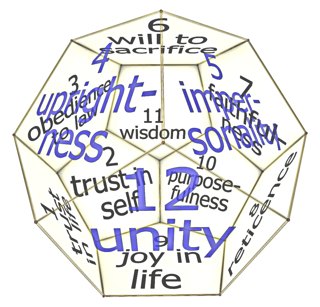 Pythagoreans hylozoics is visualized on this webpage.  Life purpose is detailed for balancing head and heart with equal power and understanding of its “conception of right” and “the twelve essential qualities”: