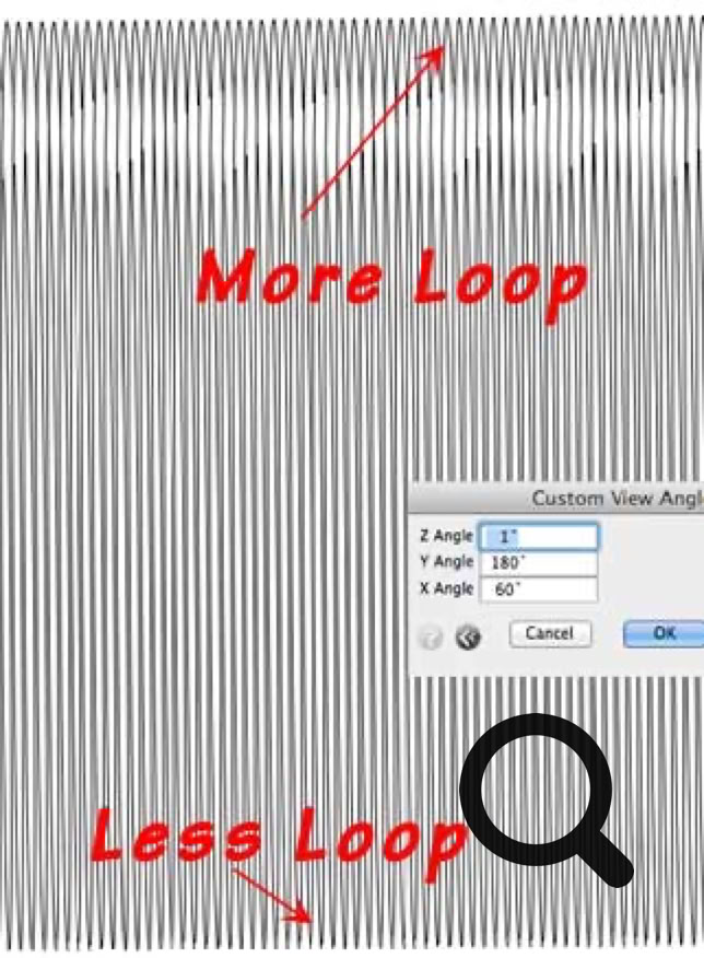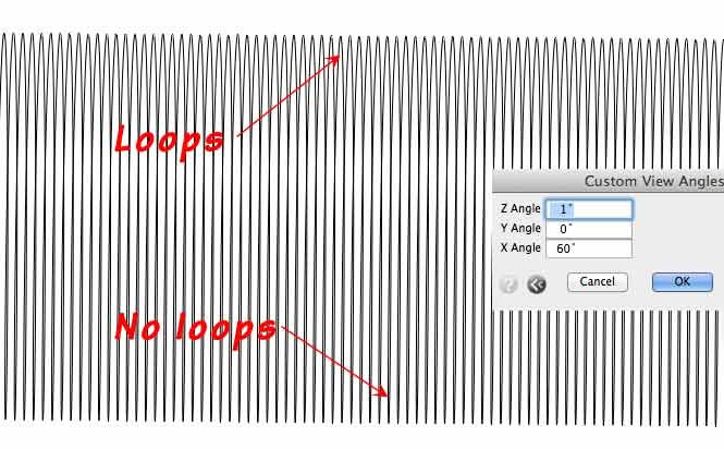So far, this page hasnoted the profiles of coils with spacings much larger than the coil substance (wire). I emphasize the scale of spacing wires apart. The spacing locates and therefore controls the fields around the wire.Where the wires approach closer together, less space is available for fields. Leading to an interesting question: Is there a coil winding (spacing) which effectively diverts the fields, away from the wires? This is the ordinary, closely packed coil winding. The fully perpendicular, no angle view presents cylindrical coils as all zigzag, no loops: