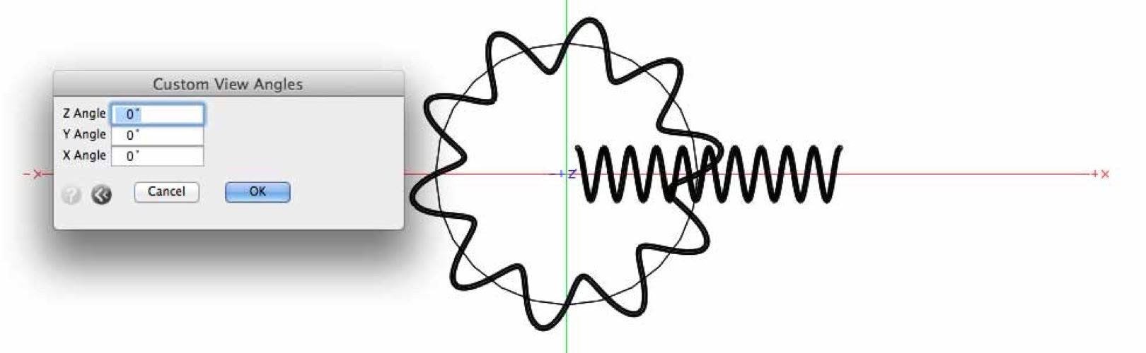 Above modeled coils are shown together: The symmetry -profile is equal, with zero-view-angle. (Axonometric, or without a custom view angle). The toroidal coil is wound around the circle. The circle is centered on the z axis. The spring like coil is wound about the x-axis. The fun in geometry software is merely adjusting parameters: