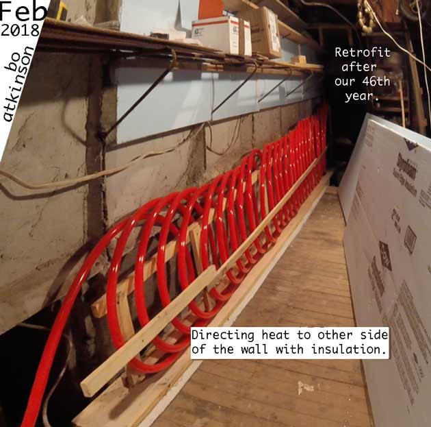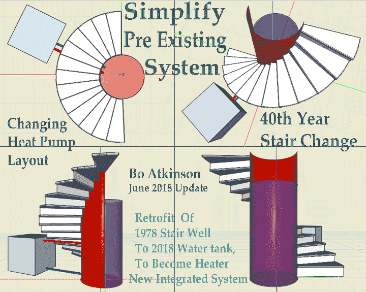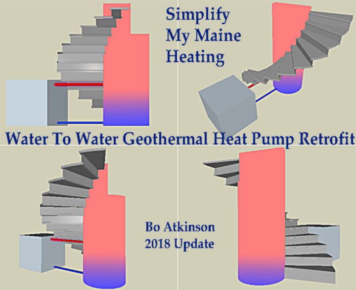 Only recently have heat pumps been made popular in the market, but using cold air as the heat source, and during the coldest northern temperatures, the promoted air-to-air heat pumps loose their advantage of economy during the coldest periods. So backups like resistance heaters or stoves are preferable. We happen to have plenty of well water for heat sourcing, which keeps the heatpump far more economical than extracting heat from extremely cold air. This was the motivation to attempt experimentation with geothermal innovations.