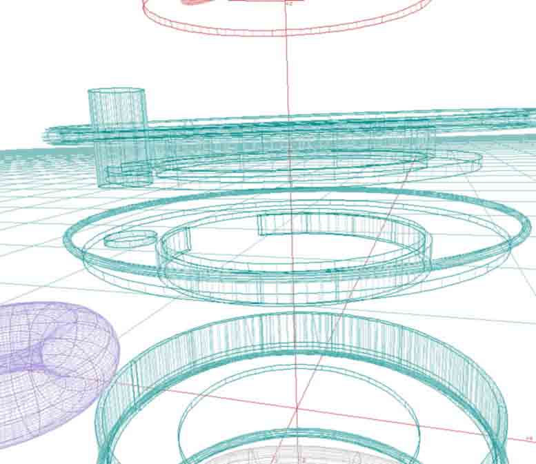 Below is an upgrade alternative for the animated model above. Please feel free to use these ideas in your own way. My effort as of 2005 was to see if plans could be sent to a machine shop. The drive mechanism -- hydraulic or gears boxes, has been a difficult choice. (My machine-shop friend had some old gear boxes but the rigging needed too much tinkering)