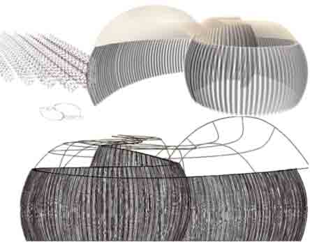 The author first applied helix reinforced mesh tubes in 1976. Since that time, many variations of helix and commercial meshes have been compared for respective implications and qualities. Following are column and tube forming alternatives. First is a wire basket like mesh which can take a "scoop" of stiff masonry and to be stacked vertically or sculpturally. Click here to see how easily these basket-dome like meshes are made.