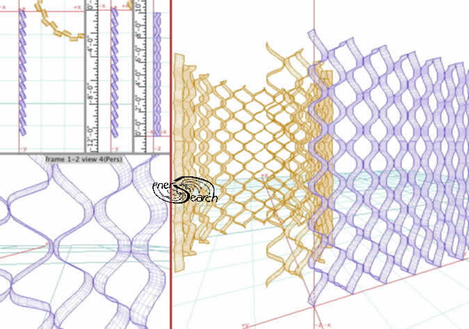 The same old hexogonal expansion further extends the 3D matrix. How many iterations make sense? Given existing mass produced mesh sheets, just one expansion is reasonably hand made to explore possibilities. A home experimenter could expand a sheet or two of lath. On industrial scales, more iterations are possible and other material alternatively apply. Further expansions of already expanded sheet further automate the 3D structural building tasks and while adding stability at progressive scales.