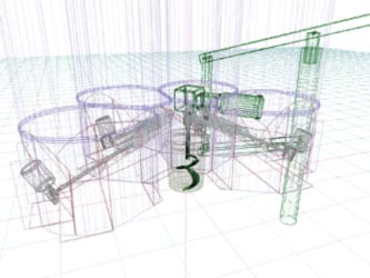 The bins form a semi circle around the mixing pail. Several optional aggregates