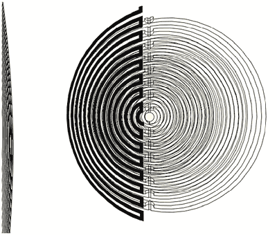 Above, one concentric dipole concept is under visualization. The new tool in formZ's latest version (beta) offers live clipping planes, to see cross-sections quickly and dynamically. I love it. However i am still trying to get more complex, spherical objects to perform: