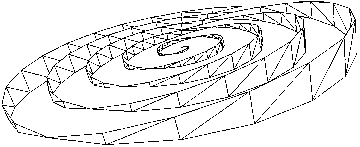 The "polar" openings at top and bottom of this graphic may be enlarged by use of conical spirals in the 3D model. Conversely, the polar holes may be essentially closed by use of a flat spiral in the 3D model. This concept grew from my childhood speculation: If an electromagnet could be spun fast enough, would i see light? (What children think of!). As an alternative experiment, the electrical and magnetic fields may trade places. In this new experiment, the red and blue symbols are regarded as electric current, which travels in an electrical coil.(A graphic diagram will be placed here, when i find time to do this).. The yellow arrow-ed path becomes the magnetic path,(during one electrical pulsing of coil). I suggest the name "retro-ductor" for this experiment, since the magnetic field is forced up and down longitudinally. Click here for more inductive concepts rendered via CAD (306 KB !) During the 80's and 90's i made various efforts to build different inductor experiments which utilize the electromagnetic fields mentioned here. (These experiments continue, at some point i will post them in detail at this site). If i had the chance i would like to adapt these geometries to plasma experiments and also to discussions in cosmology. (Here is one example of one attempt to apply bi-axial geometric concepts to cosmology). Click here to see "hyper" spiraling, concentric spheres. Tetrahelix As Prism, Light/ Ray Tracing Experiment Tetrahedron used as a mold to model a "poloidal" biaxial structure.