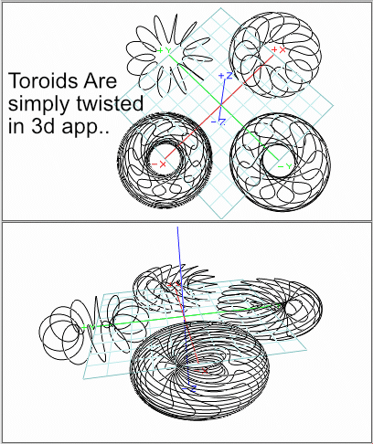 Above: A few clicks with an adequate 3d app easily twists the regular toroid as much as the user desires by simply typing the number of degrees.