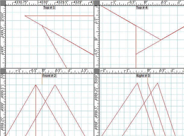 At ratios greater than 100:1, equilateral tetrahedrons are closely approximated. I also wonder if there might be variations of math formulae for helices, wherein a more equilateral tetrahedron will generate. The image directly below reveals a consistent limitation for the trihedral helix. Regardless of very large ratios, there always appears to remain gaps at the vertices. Gaps which equal the triangular path segments (or sides). As in "Top#4" view below.