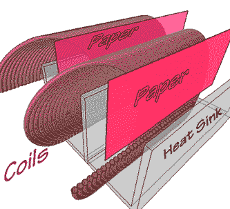 The paper and heat sink fins-only, can be imagined as plates or strips of an electromagnetic core material. The polarities will be opposed, but in an unusual manner.