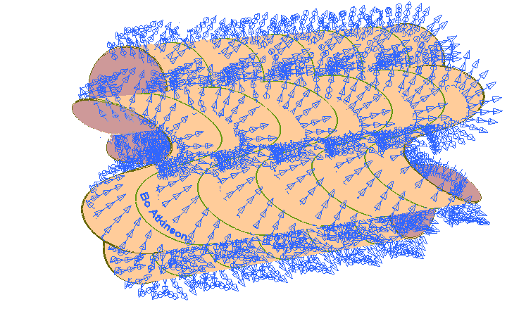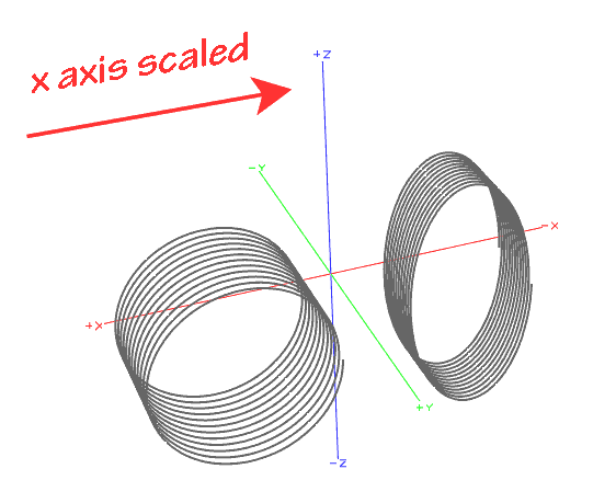 Next below, the xyz axes have been hidden. Also there is a translucent greenish backing for the coils in image above. This has been removed below. Such efforts are part of the visualizing technique.
