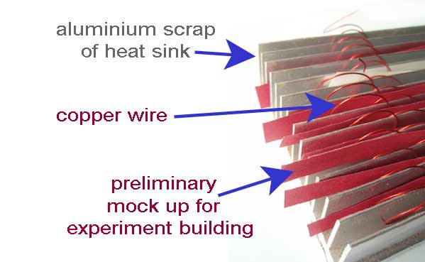 Until this paragraph, observation of the half-turn core division, has been considered. The strips and fins help the study. We see that simple strips when inserted, will be confined by the coil wire. Yet experiments should also test the effect of extending the plane of the strips beyond this confinement. (This 'extending' aspect is illustrated further below). The core options branch out with multiple configuration applications. I will present some of my application ideas on this web page.