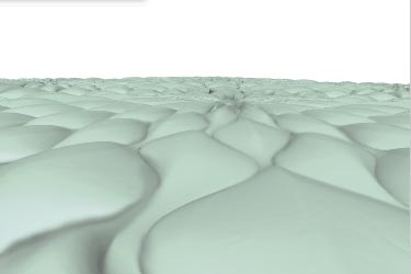 The molds visualized above would be filled with cement, concrete and reinforcement , (according to proportioned, engineered specs). Below, the cement is visualized, covering the molds. Dense infilling with concrete and steel reinforcement could comprise vault surfaces shown below.