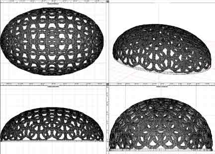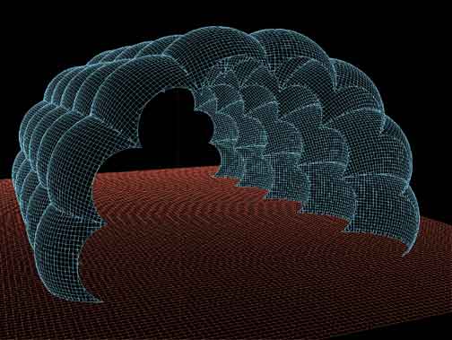 While scalloping uses more surface area, it also engenders a framing component. Shells are reinforced by the surface corrugation. More surface can mean more labor and material, but it does offer some strength advantages. Our world is improving tools to simplify curvilinear construction. It remains for individuals to support those efforts and "vote with the pocket book". The content on this website, http://harmoniouspalette.com, is placed in the public domain only as a free exchange of ideas and as a "hard studied wish to serve life". The author assumes no responsibility for the improper use of the concepts in these web pages, as all relevant laws of life and local codes should be verified and observed before any building or experimentation proceeds. discussion is welcome, please write. Bo Atkinson