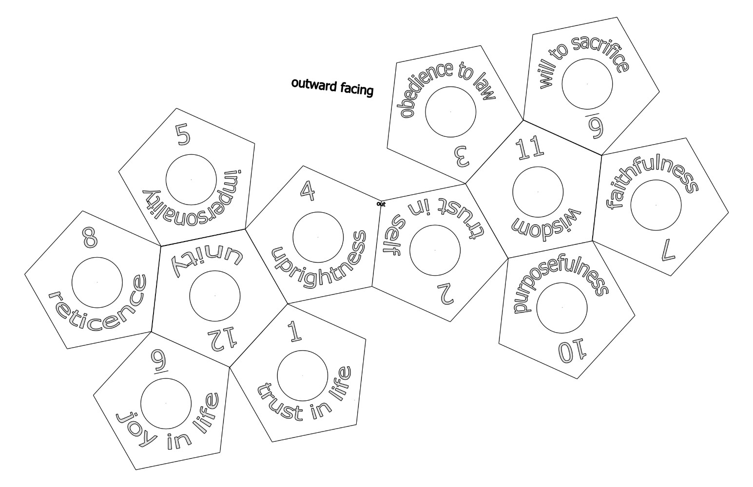 A larger, 12EssentialQualities-in-out-VRML.wrl, a 794 KB format is available by email request. It includes attempts to provide inside and outside inscriptions, but as of the early 2020s there are universality-issues with surface-solidity encoding, because of surface model efficiencies to reduce file size, and because of universal standards for rendering. All are all still in development for improving universal qualities of rendering and supporting technological updates.