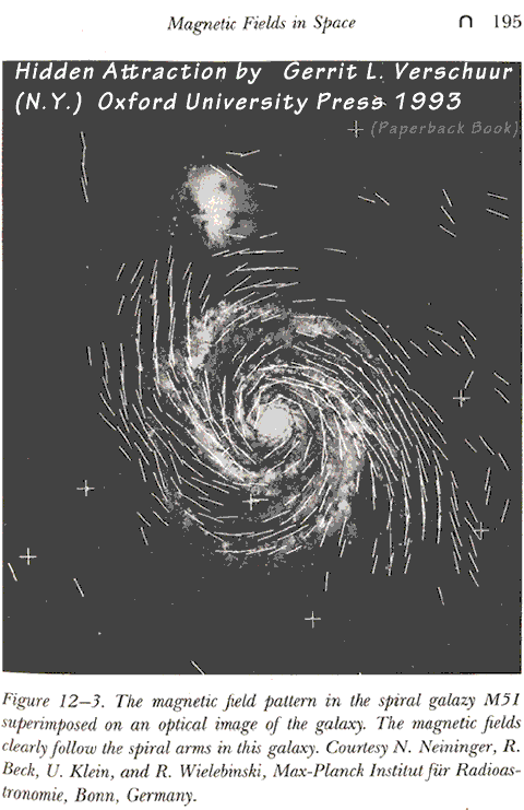 A1993 book includes this image of a magnetic field pattern of spiral galaxy 51.... Does this suggest orbital electric fields along the arms? In case helical orthogonality is helical, but not discreet, orthogonal circles, (circular orbits spaced along a path). I don't know much about this distinction or about this sort of mapping determination. However the relevance here is to consider the spiral paths. To look for imbalances according to view points.