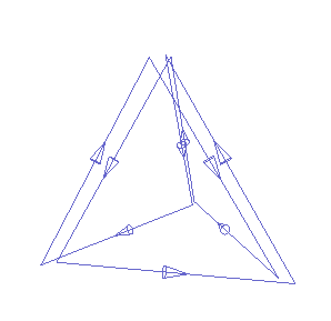 Further examples may be seen here. Electrical circuits for these would interconnect by mid points and by vertices, dependent upon the assembly... There also remains the fact, that 3 legs of the primal tetrahedron (heli-tet?), have wires with opposite alignments (or polarities). While the remaining 3 legs are single wires. I will elaborate on my work with these assemblies as more observations are collected from from experiments. I would have enjoyed experimenting with better equipment and training. My experimental coils are a little crude.