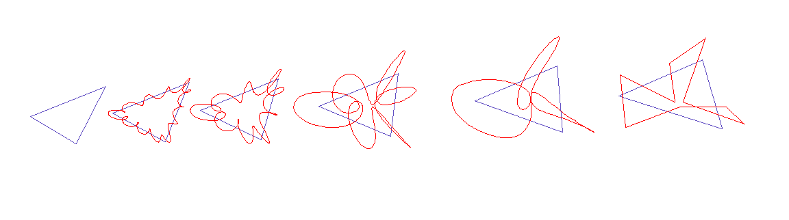The helix radius in this example immediately above, is many times larger than the triangular source path radius. (Ratio differences at work). These are screen capture images from 2009, (using formZ):
