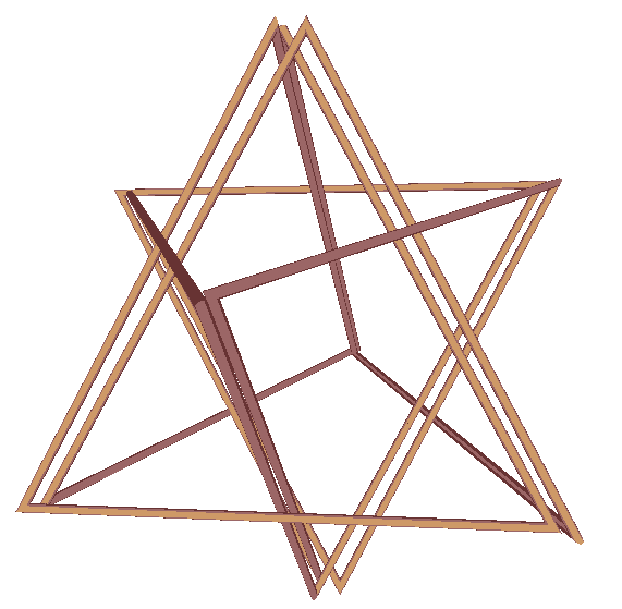 Yet another model below visualizes a quick render emulating copper bars with sharp corners. To emphasize the physical challenge of forming and 'perfecting' a copper, tetrahedron circuit: The close bars/wires would be insulated but touching. If not to use square-cross sectional conductors. (Yet another experimental issue to study.).