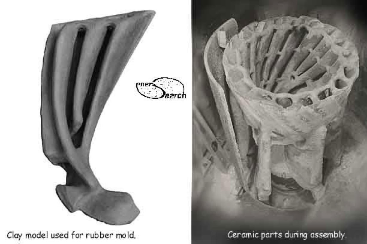 Above: stages from clay modeling to finished ceramic prototype assembly. The refractory castables here used are mixtures of Fondu cement paste by Lonestar Mfg. and the two aggregates were 1) corundum for the grate portion, and 2) potters grog, used for the curved walls. Castable refractories are intended for much thicker applications. I worked with very little money and could barely buy these. I tried some other designs, (not shown) in the succeeding years, especially since i could not afford to implement all the VFA features.